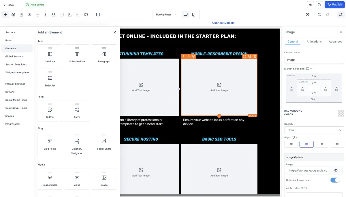 Get Found on Google: Built-in tools help you optimize your site basics for search engines, attracting more visitors organically.